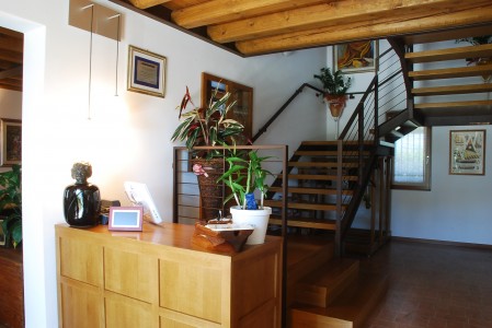 Il progetto consiste nella riorganizzazione interna degli spazi e l'ampliamento funzionale alla trasformazione di un tipico casolare della campagna veneta in ristorante. Il fabbricato esistente si componeva di un corpo principale a tre piani e uno annesso ad un piano più sottotetto. Il corpo principale a tre piani possedeva una forte caratterizzazione legata alla qualità della muratura perimetrale in pietra e mattoni. L’intervento ha mantenuto la facciata principale a sud, inserendo nuove finestre sulla facciata nord. È stata completamente conservata la cornice di gronda in pietra, la torretta da camino, l’abbaino presente sulla copertura ed ogni elemento tipico: la facciata è rimasta con tessitura muraria a vista isolando termicamente dall'interno. Internamente è stata fatta una ristrutturazione generale con apertura di varchi sulla muratura per permettere l’adeguamento dei locali alla nuova destinazione.